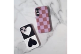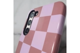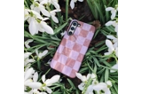 Mocha Mousse and pastel purple, a dreamy and edgy colour combo brought together in a minimal grid print design.