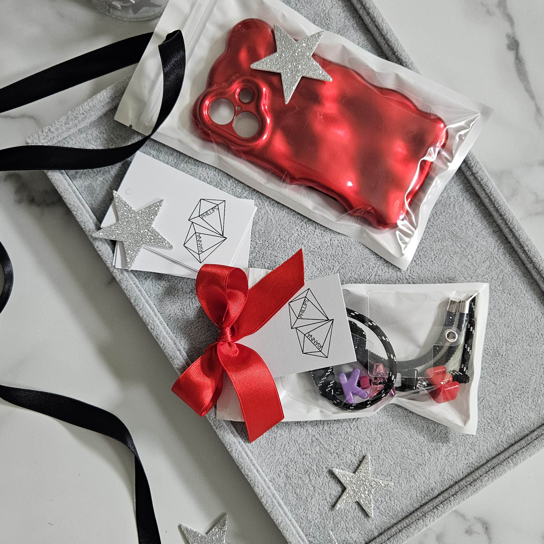 The perfect gift combo, a minimal and curvy crimson red coloured phone case and a quirky charm that can be used with the attachment to hook onto your phone case or unclip and use as a handbag charm. The choice is yours! Each phone case and personalised candy bead charm combo is individually wrapped, solving multiple tricky gift problems or the ultimate present to a lucky recipient or a gorgeous gift to yourself!