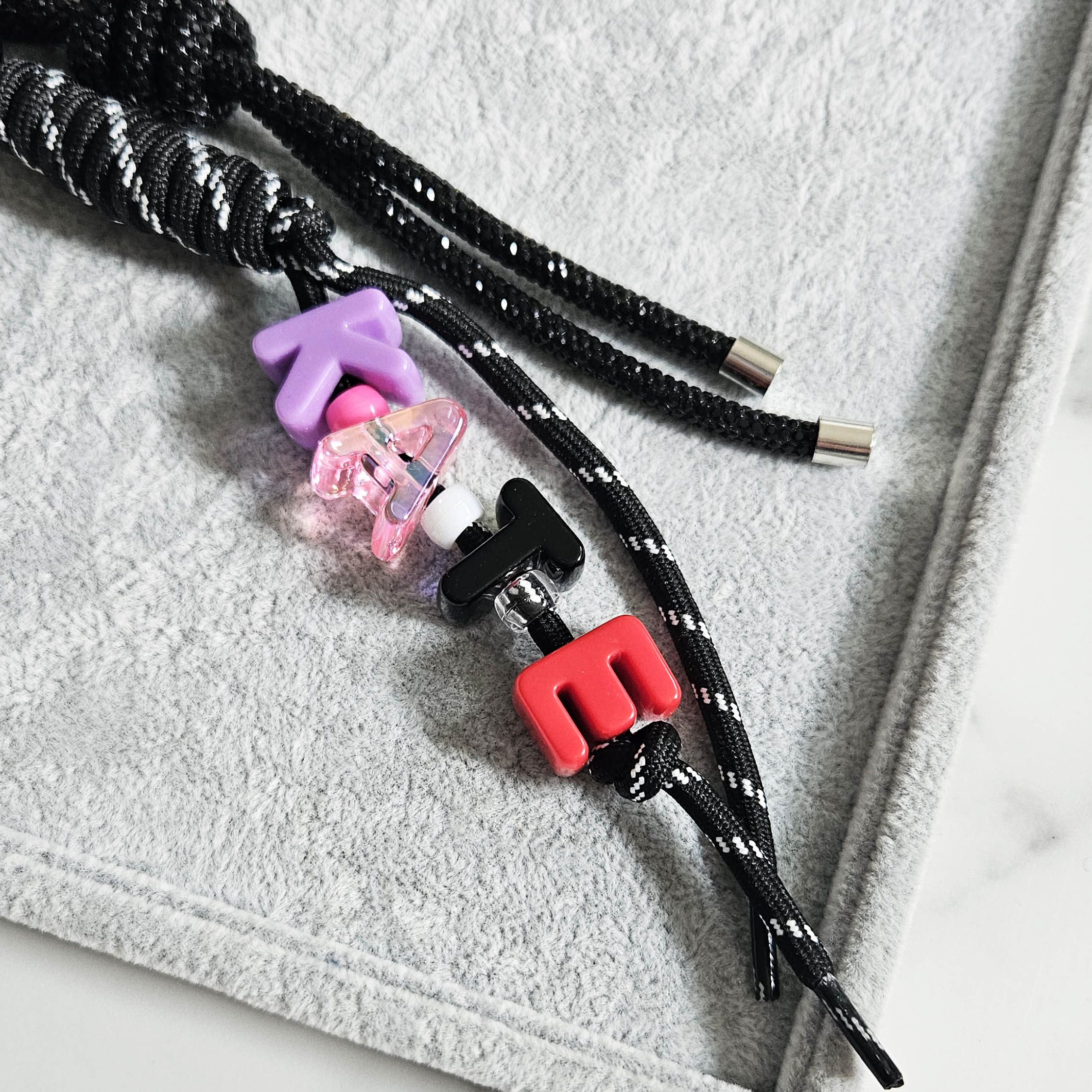 - Choose up to 8 candy bead letters - Choose from Light Purple or Black rope - Candy bean colours chosen at random - Comes with a durable Perspex chain attachment if purchasing a chain. - Available in a range of iPhone devices. - Posts within 5-8 days of purchase