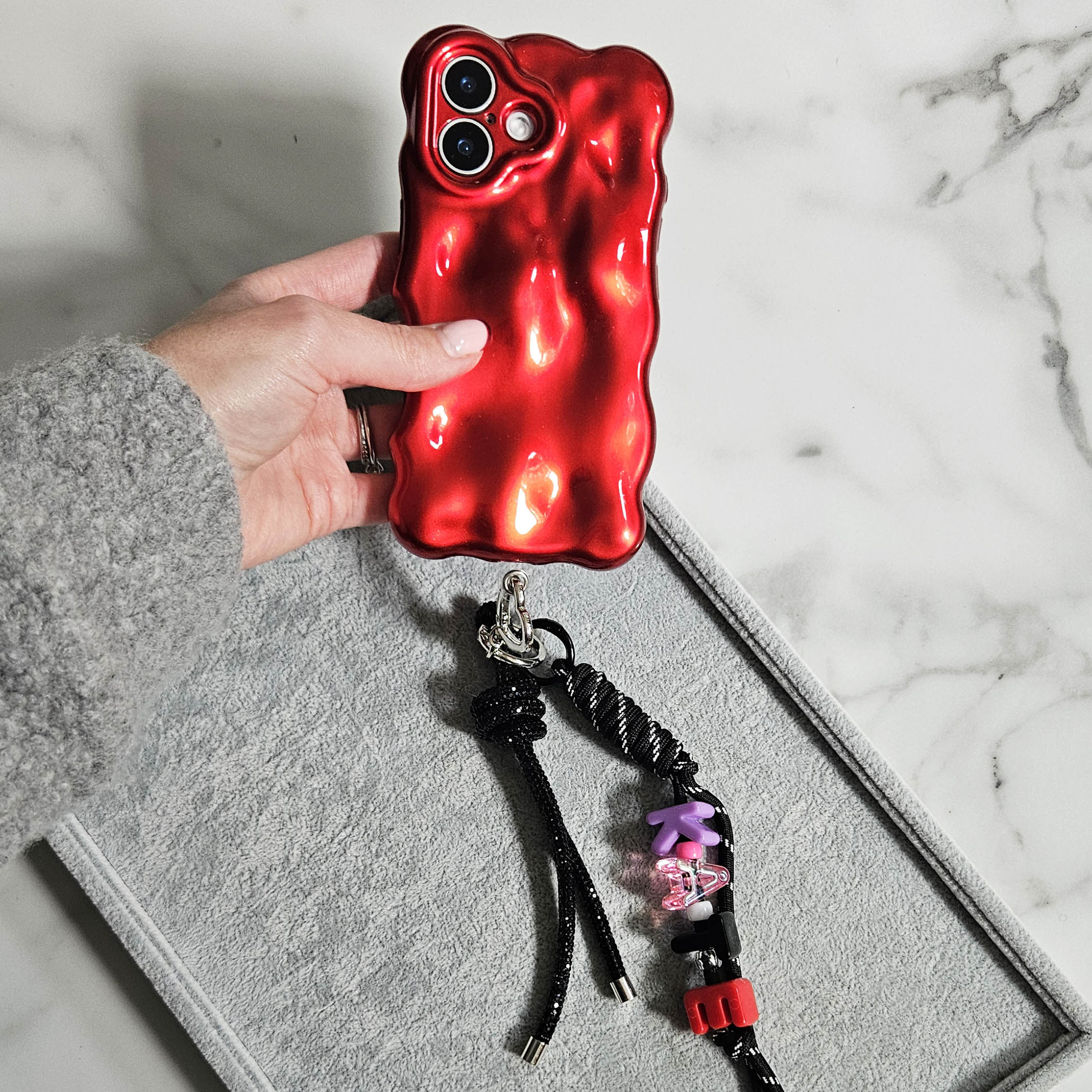 Limited Edition Crimson Red Bubble bubble phone case & Candy Bead Charm Combo