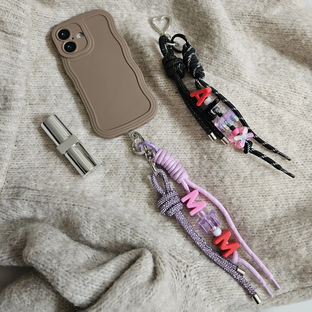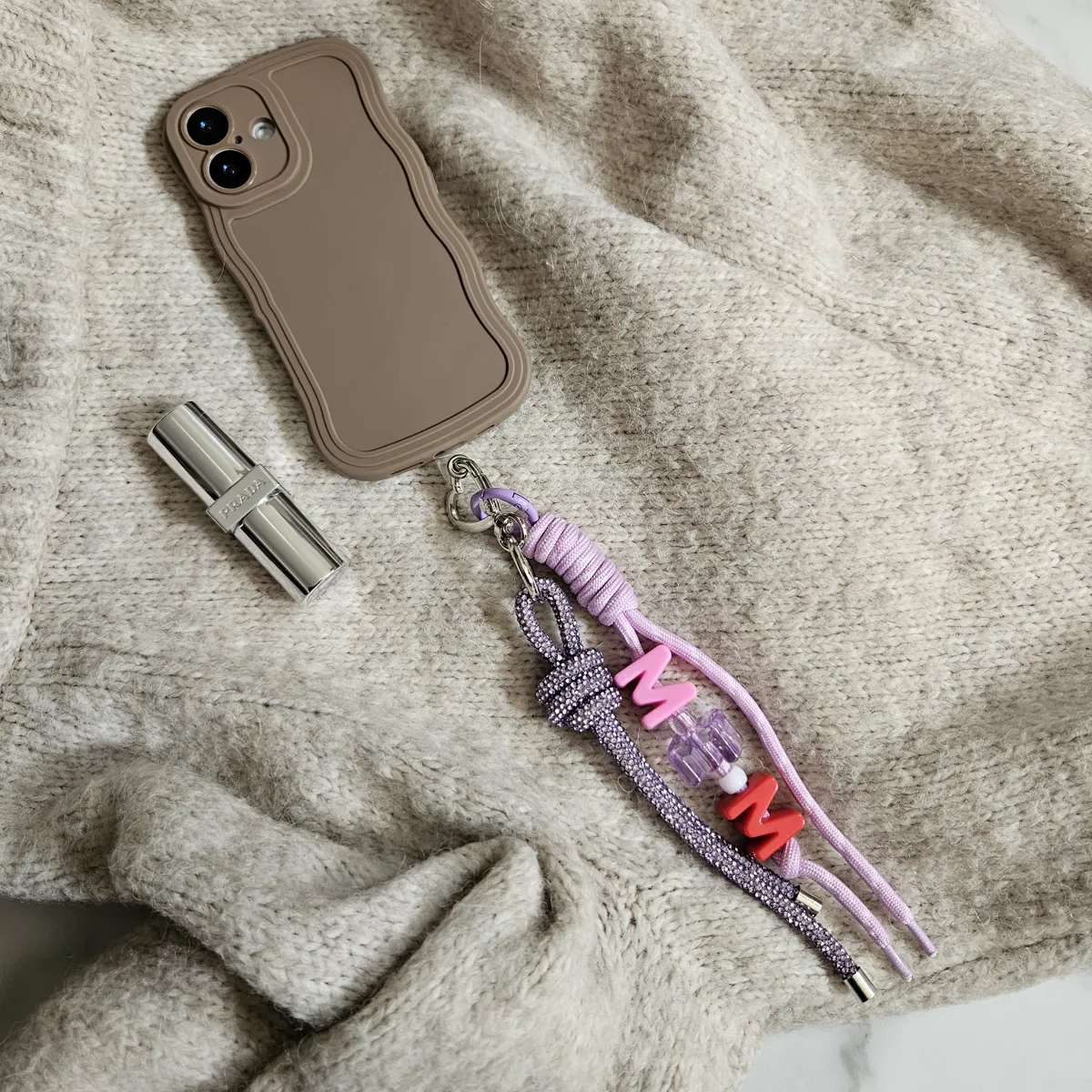 The perfect gift combo, a minimal and curvy mocha mousse coloured phone case and a quirky charm that can be used with the attachment to hook onto your phone case or unclip and use as a handbag charm. The choice is yours! Each phone case and personalised candy bead charm combo is individually wrapped, solving multiple tricky gift problems or the ultimate present to a lucky recipient or a gorgeous gift to yourself!