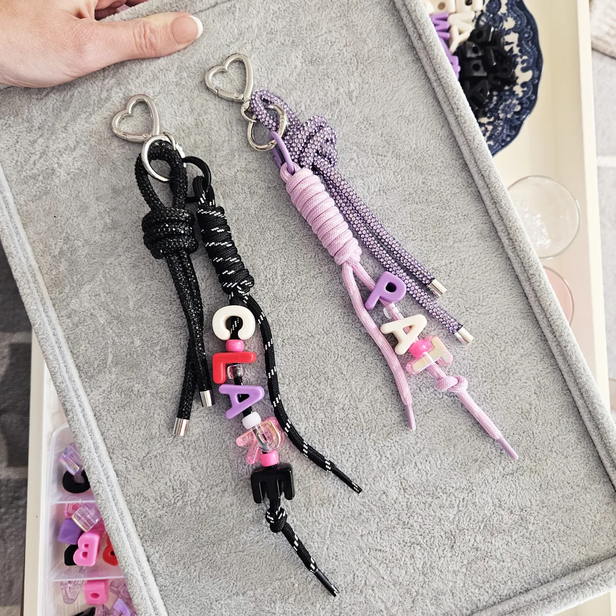 - Choose up to 8 candy bead letters - Choose from Light Purple or Black rope - Candy bean colours chosen at random - Comes with a durable Perspex chain attachment if purchasing a chain. - Available in a range of iPhone devices. - Posts within 5-8 days of purchase