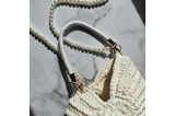 Head to the beach with this minimal, fun and quirky crochet beach bag. Use the long pearl chain handle for an evening look or opt for the shorter plaited handle as you saunter on through the holiday markets. Mimicking the natural shape of a conch seashell, this structed crochet bag holds it shape beautifully, keeping all your treasures safe.